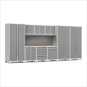 NewAge Garage Cabinets PRO Series Platinum 10-Piece Set with Bamboo Top and Slatwall