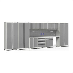 NewAge Garage Cabinets PRO Series Platinum 12-Piece Set with Stainless Tops and Slatwall Hook Kit