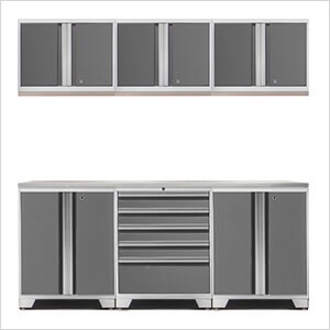 NewAge Garage Cabinets BOLD Series Platinum 9-Piece Set with Stainless Steel Top