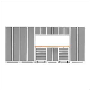 NewAge Garage Cabinets BOLD Series Platinum 10-Piece Set with Bamboo Top and LED Lights