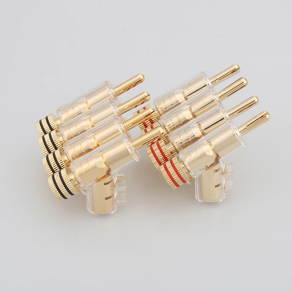 4pcs/set VB202G High Performance 24K Gold Plated Audio Banana Connectors 45Dgree Locking Banana Plug For Hifi Speaker Cable