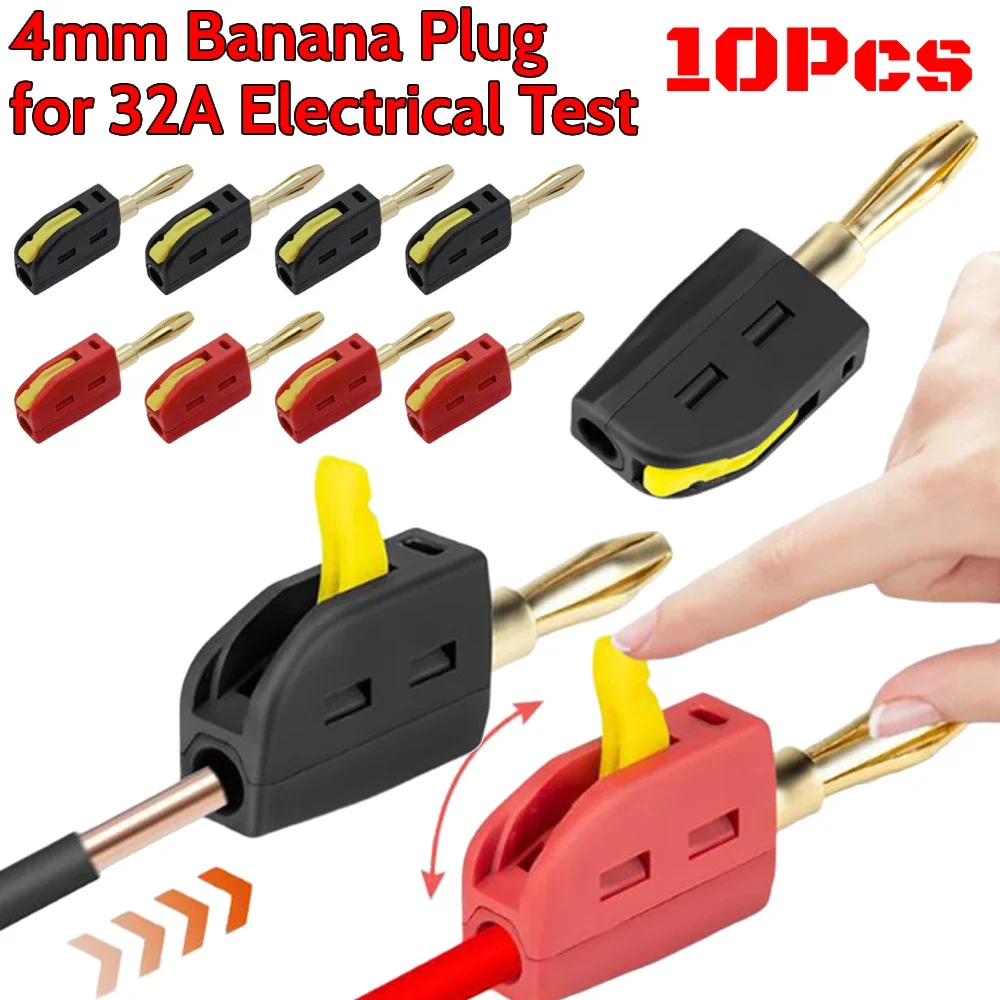 10Pcs 4mm High Current Plugs Solder-Free Gold-Plated Banana Connector Self-Locking Lantern Buckle Plug for 32A Electrical Test