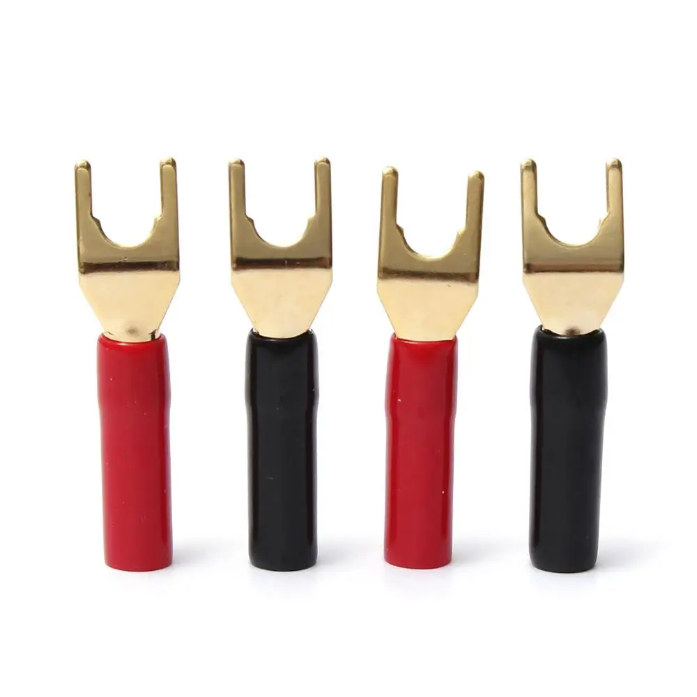 4Pcs Y-style Spade Banana Plug Gold Plated Tuning Fork Banana Plug Jack Plug Solderless Speaker Cable Power Terminal Connector