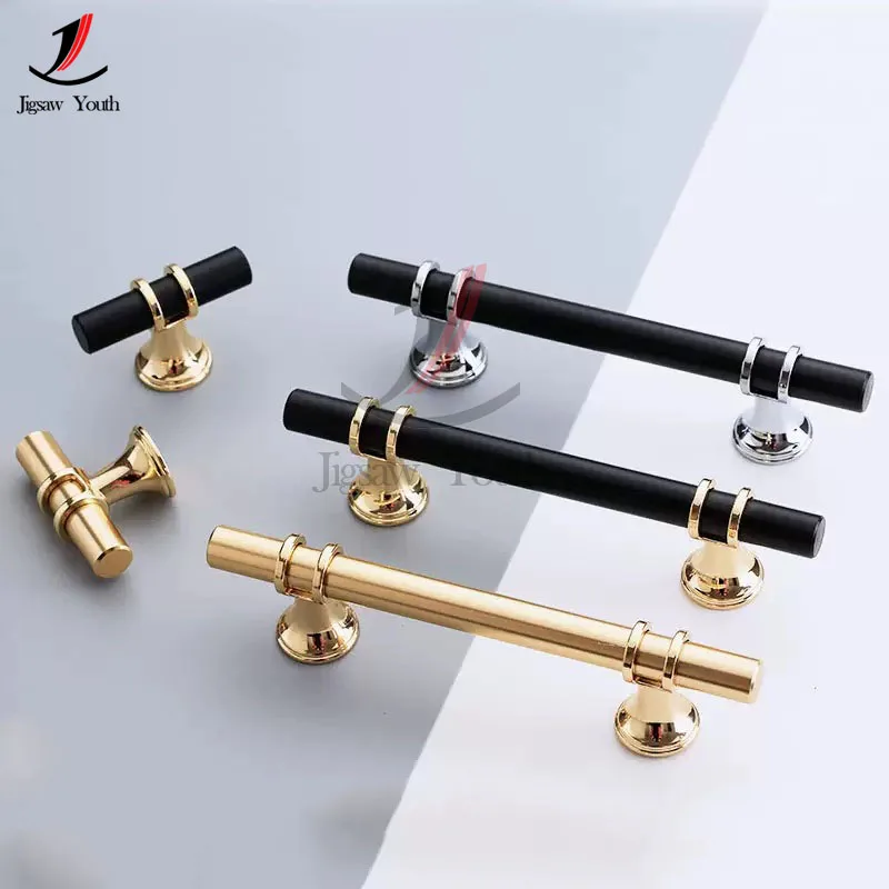Santaya Solid Brass Luxury Furniture Handle Ribbed Romance Style PVD Gold T-Bar Kitchen Cabinet Pull Wardrobe Door Copper Knob