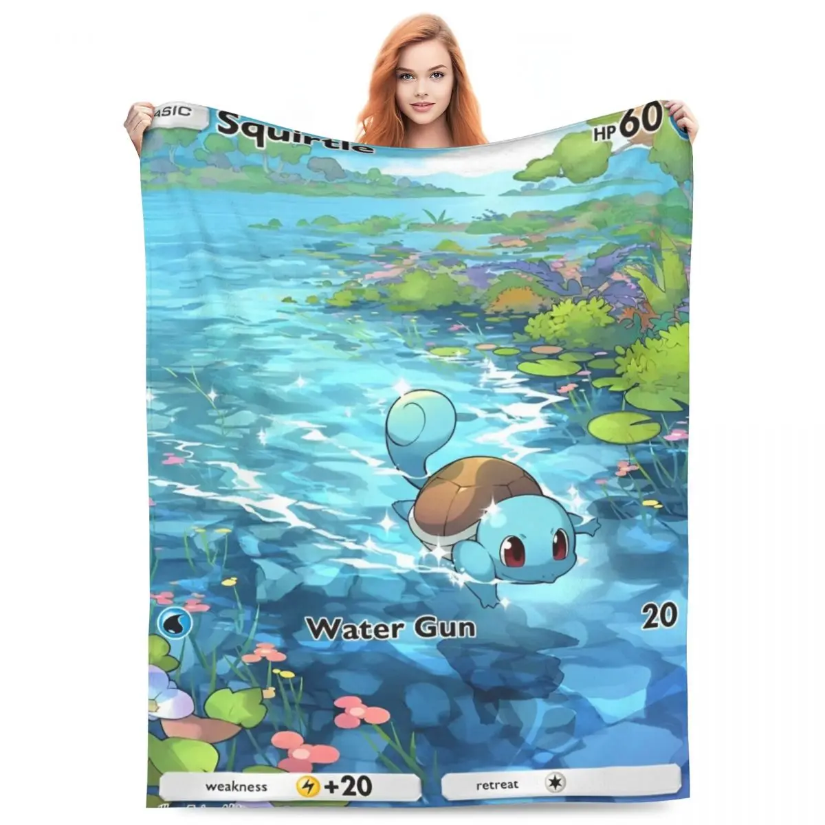 Pokemon Anime Card Squirtle Warm Soft Blanket Travel Office Plush Throw Blanket Street Trend Couch Bed Flannel Bedspread