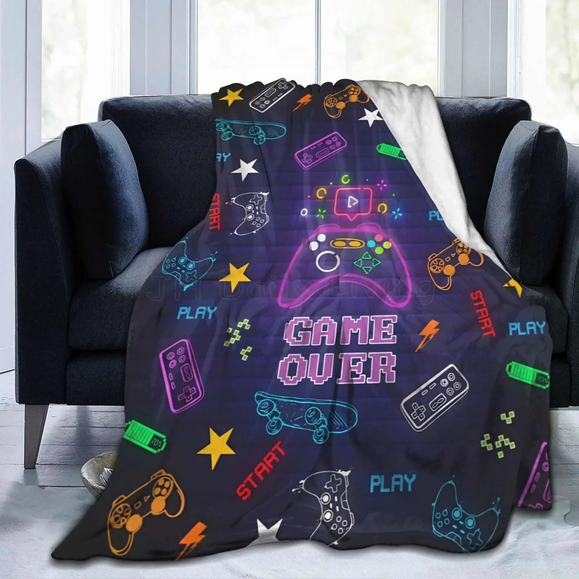 Gamer Gamepad Print Flannel Fleece Blanket Soft Cozy Warm Throw Blanket Nap Blankets for Travel Sofa Bed Office Home Decor Gifts