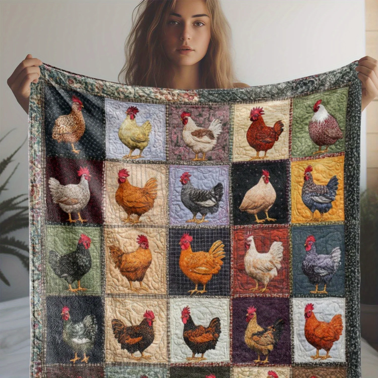1PC Vintage Chicken Patchwork Flannel Blanket - Soft, Warm and Cozy for Sofa, Bed, Office, Car, Camping and Travel - Perfect All