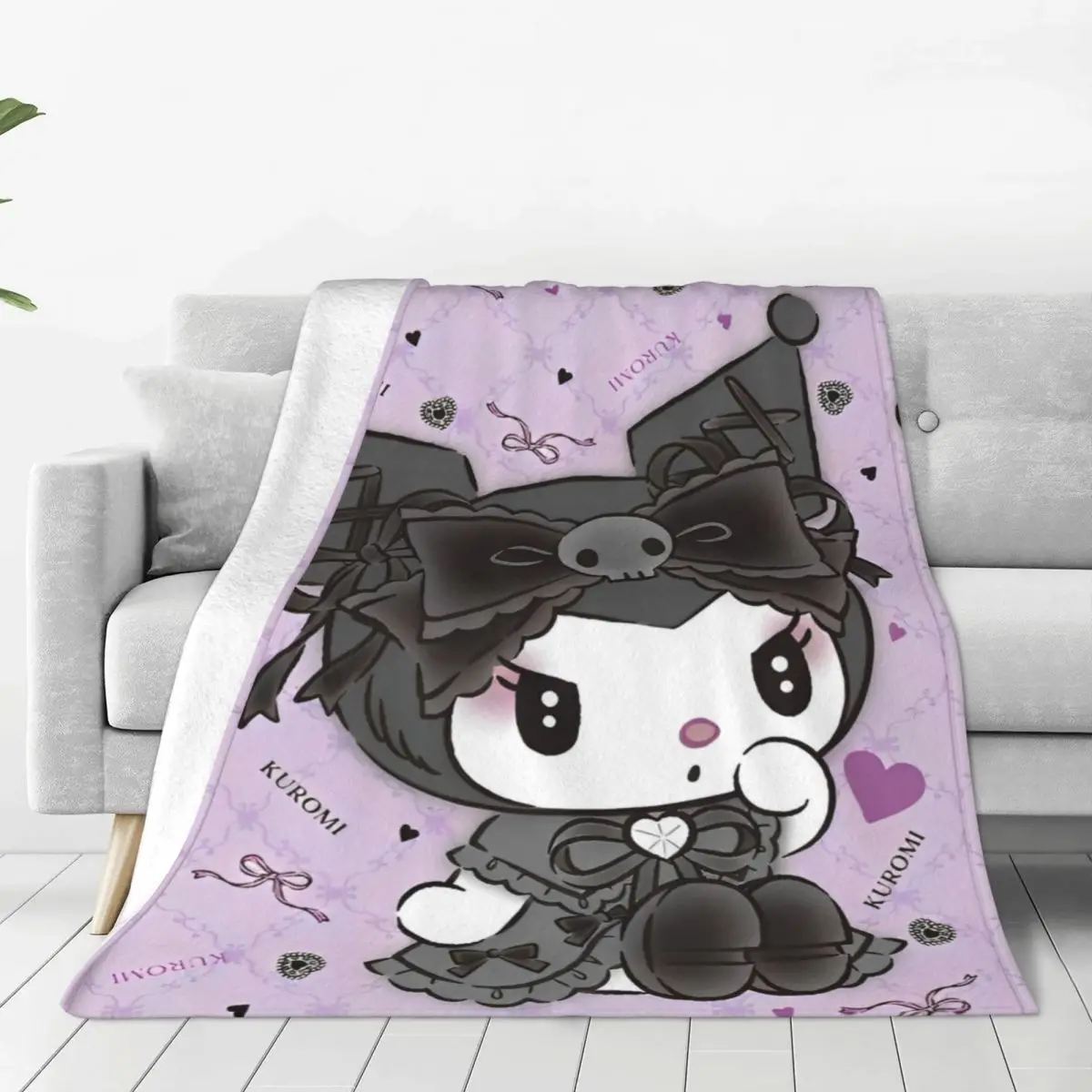 Sanrio Kuromi Cartoon Kawaii Flannel Blanket Soft Throw Blanket for Living Room Travel Comfortable Bedspread Sofa Bed Cover