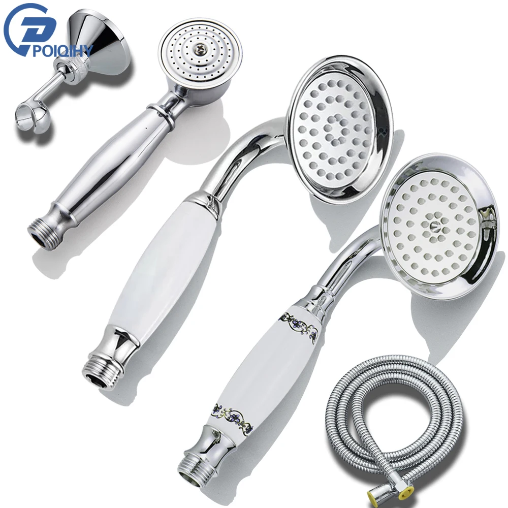 Chrome Handshower Ceramic Handheld Head Brass Bracket 150cm Shower Hose Faucet Head Bathroom Accessory for Bathroom