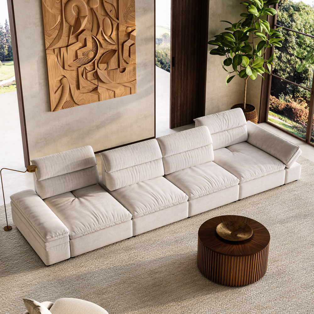 172.83" Sofa with Adjustable Backrest & Armrests, 23.62"- 35.43"Seating Depth, Cozy Couch for Living Room, Segmented Backrest, Anti-scratch and Water-proof Fabric, Dark Beige