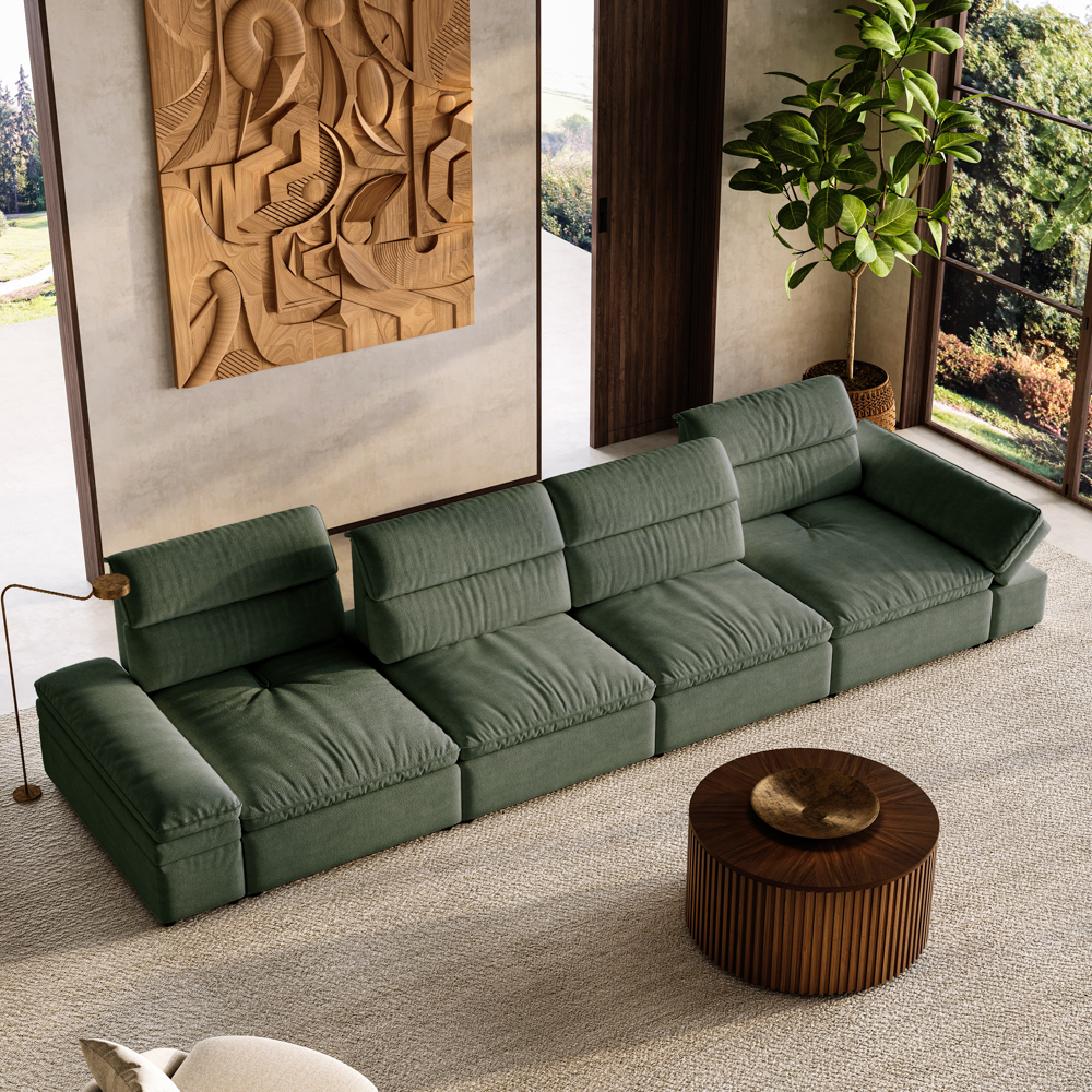 172.83" Sofa with Adjustable Backrest & Armrests, 23.62"- 35.43"Seating Depth, Cozy Couch for Living Room, Segmented Backrest, Anti-scratch and Water-proof Fabric, Dark Green