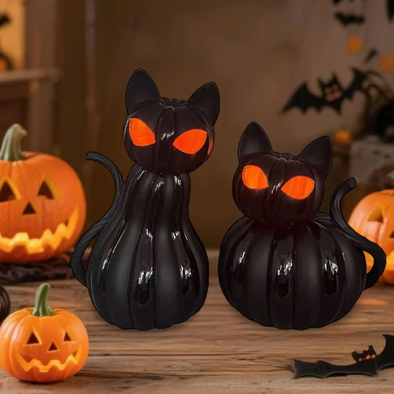 Halloween Cat Pumpkin Decor Scene Props Bedside Lamp for Office Room Shelf