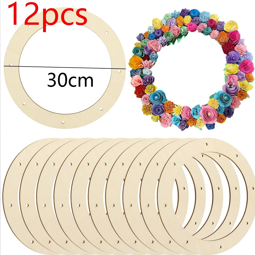 6/12PC DIY Wooden Frames Handmade Heart Round Wreaths Frame Base Wood Rings Wedding Party Festival Wreaths Ornaments Making