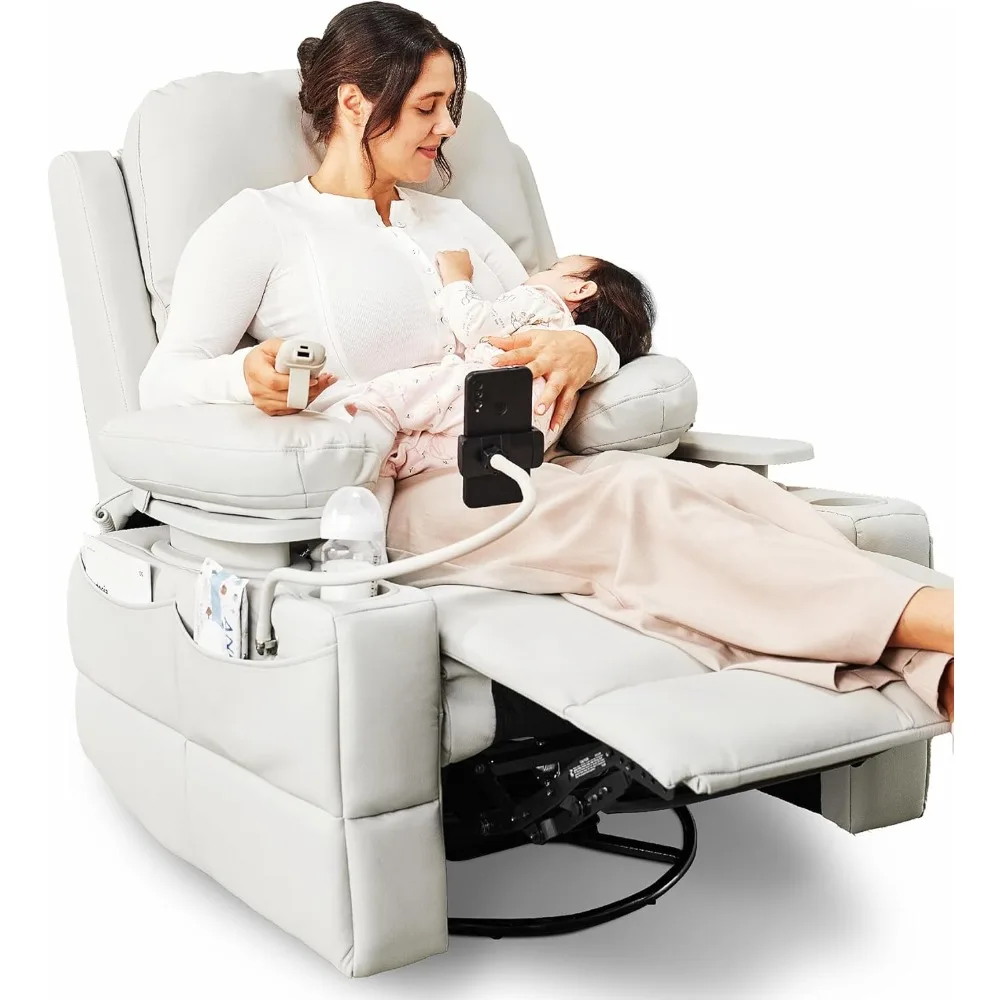 Rocking Chair Nursery with Adjustable Armrests, Electric Glider Recliner Nursing Chair for Breastfeeding, Power Swivel Recliner