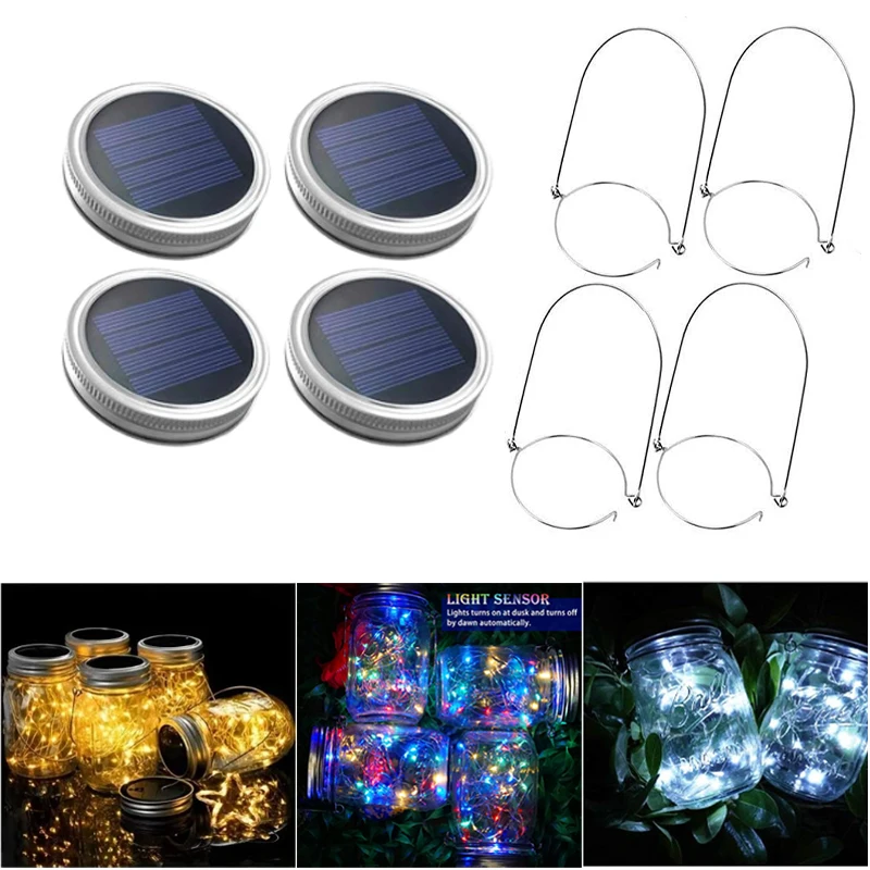 Solar Mason Jar Lights 20 LED Waterproof Fairy Firefly Jar Lid with Handles Lights For Patio Garden Wedding Decoration(No Jars)