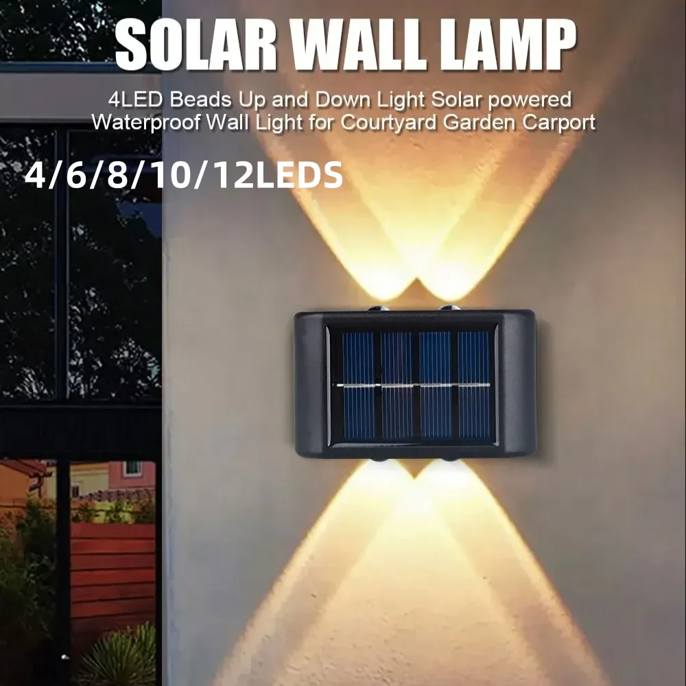 Solar Outdoor Wall Light 2-12 LED Waterproof Garden Light Balustrade Decorative Atmosphere Lamp Down Luminous Solar Lamp