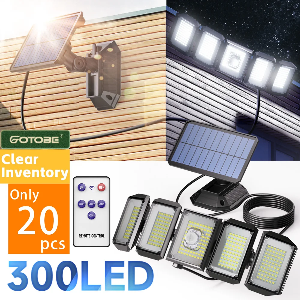 Clear inventory 5 Heads 300 LED Outdoor Solar Light Motion Sensor Waterproof 4 Modes Street Lamp Garden Yard Garage Wall Lights  Read more