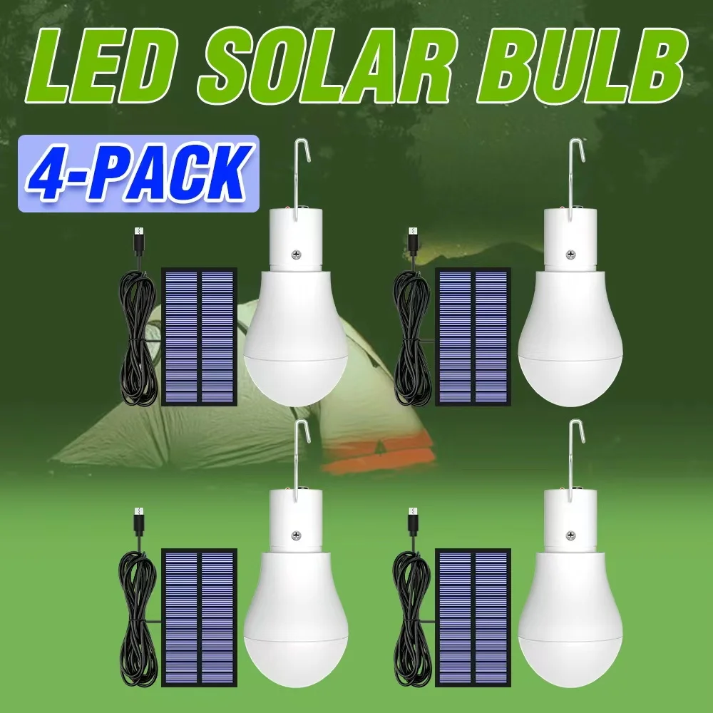 4 Pack LED Solar Light Bulb Portable Garden Lamp With Cable Waterproof Solar Panel Emergency Lighting For Camping Night Market