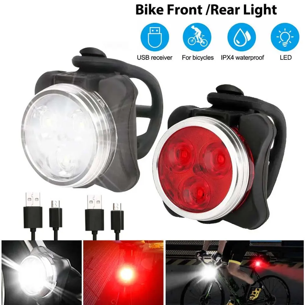Bicycle Headlight Tail Light Outdoor Night Lights Warning Lights Usb Rechargeable Led Waterproof Bike Light