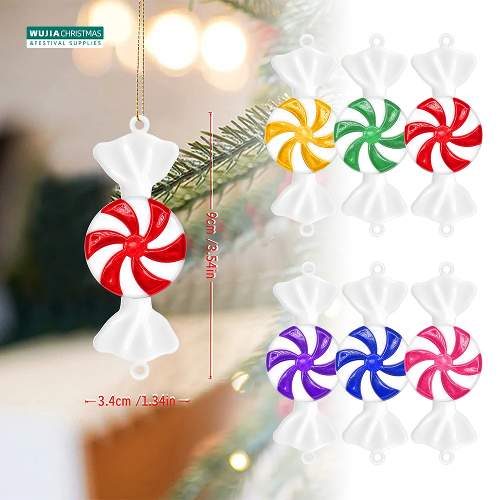 12pcs Candy Christmas Tree Hanging Ornament Colorful Peppermint Decor Fake Sweets Fun Xmas Wedding Party Children's Toys Navidad
