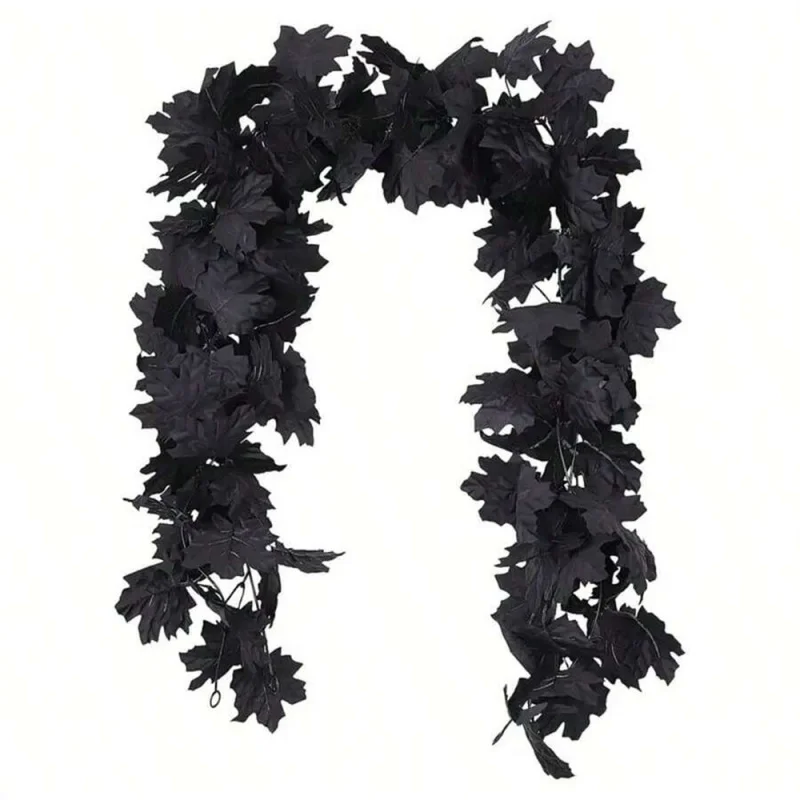 Black Eucalyptus Leaves Stems Maple Leaf Garland Artificial Vines Halloween Christmas Decor for Home Room DIY Wedding Decoration