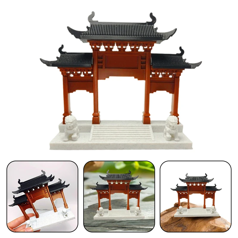 Chinese Memorial Archway Statue Ancient Building Model Japanese Pavilion Decoration Miniature Rockery Aquarium Bonsai Ornament