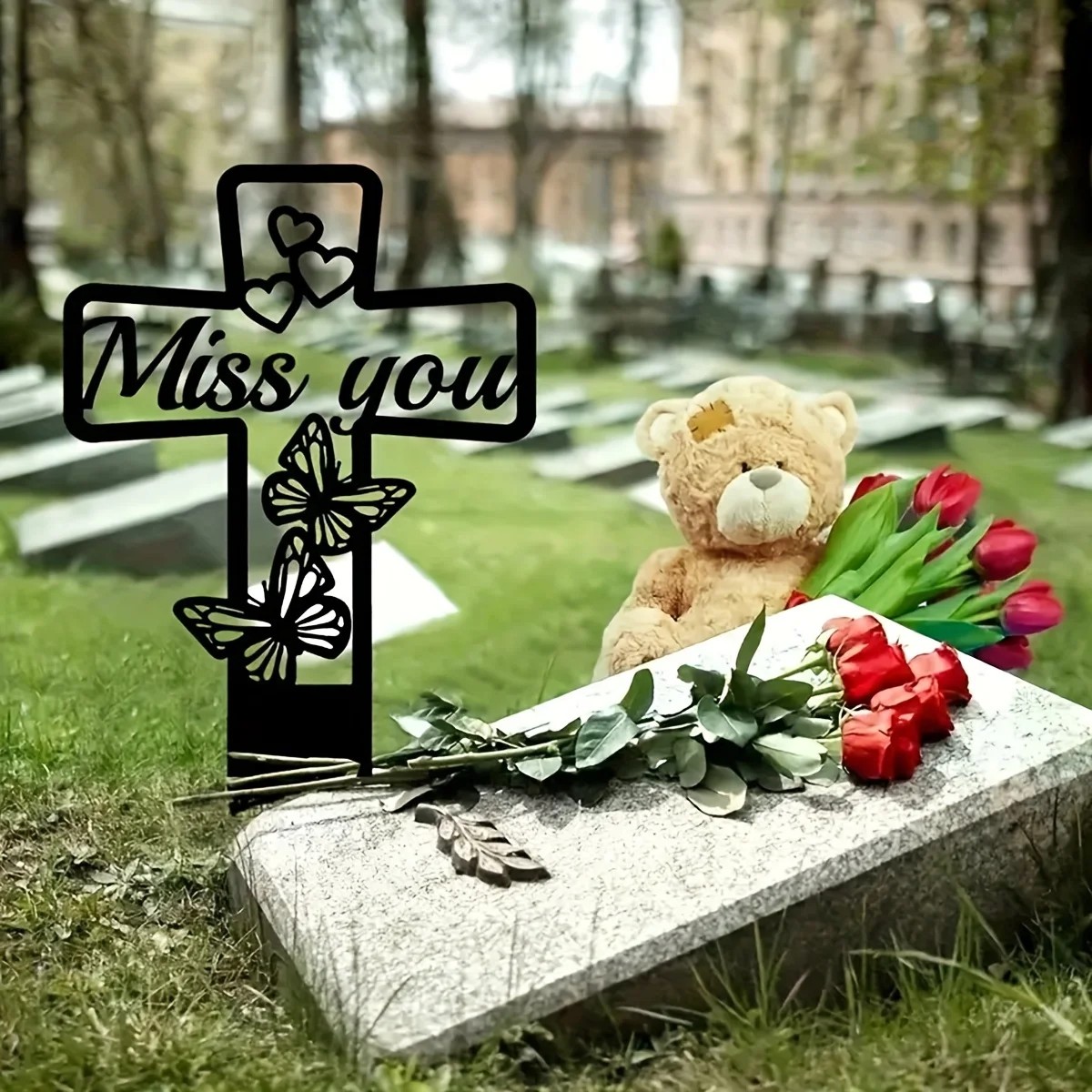 1pc garden iron silhouette, cross memorial plaque stake, garden stake cemetery decoration, metal art decoratio  Read more
