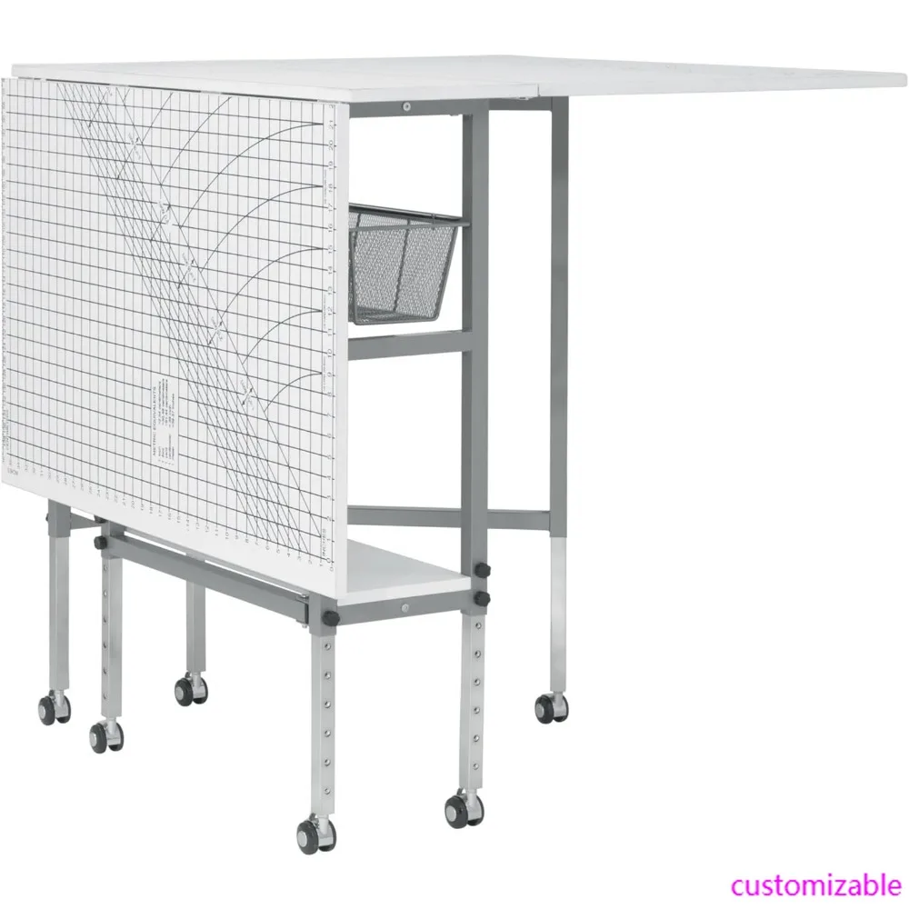 White Foldable Arts and Crafts Table with 58.75 W x 36.5 D, Grid Surface and Silver Storage