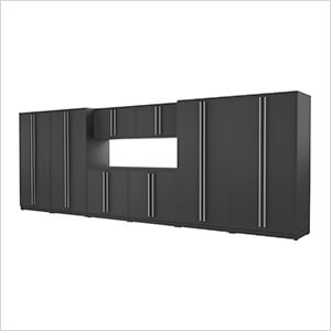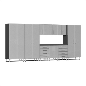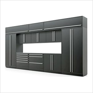 This ten (10) piece kit with recessed and channeled worktop provides versatile oversized shelves / drawers, and space saving wall storage to get you clutter-free quickly.