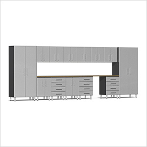 This fourteen (14) piece kit with bamboo worktop provides versatile oversized shelves / drawers, and space saving wall storage to get you clutter-free quickly.