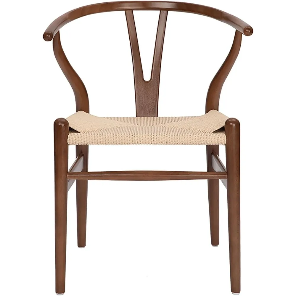 Wishbone Chair, Weave Solid Wood Mid-Century Modern Y Shaped Backrest Dining Chair (Walnut Set of 2)
