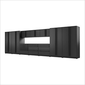 Proslat Garage Cabinets 12-Piece Mat Black Cabinet Set with Black Handles and Powder Coated Worktop