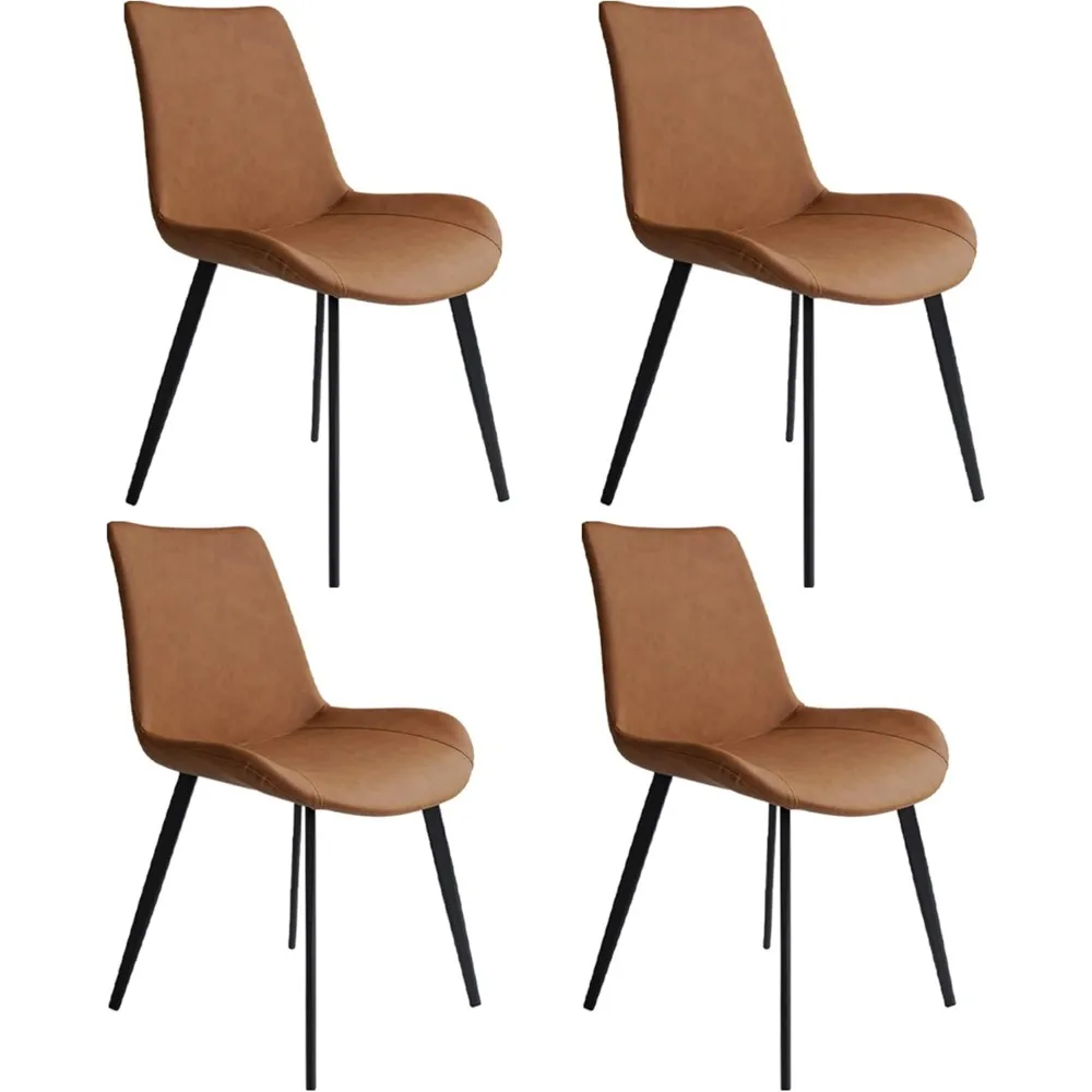 Modern Dining Chairs Upholstered Faux Leather Cushion Seat and Sturdy Metal Legs (4 Brown Chairs)