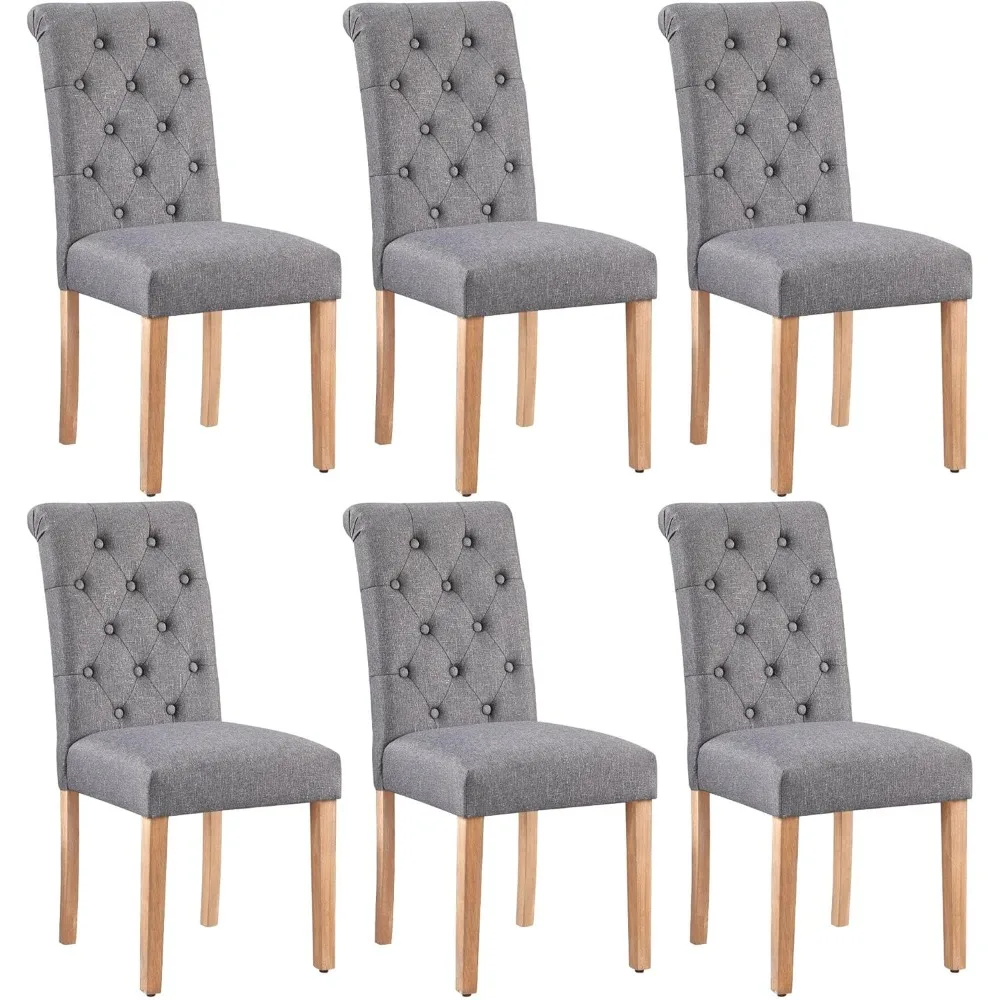 Dining Chairs Set of 6 Fabric Upholstered Dining Chairs Padded Chairs Button Tufted Kitchen Chairs With Solid Wood Legs for Hom