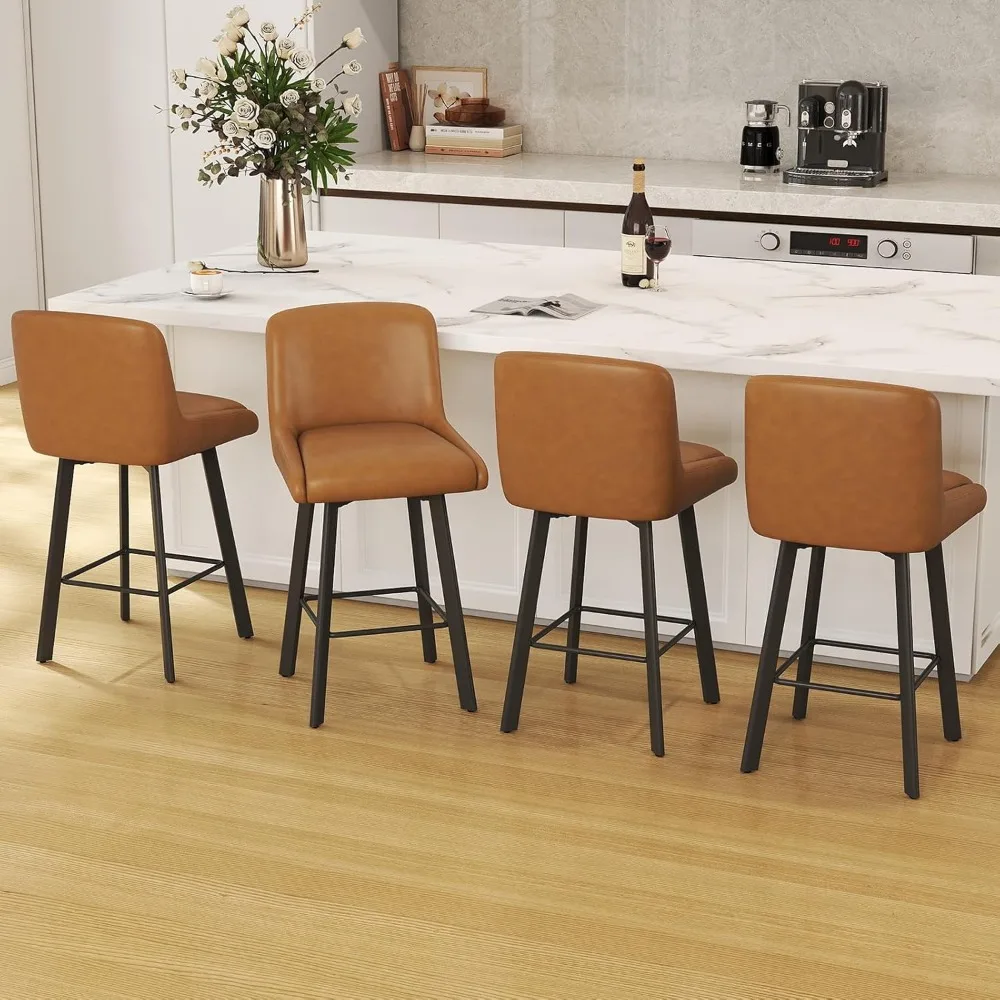 Set of 4 Modern Swivel Bar Stools – 26" Counter Height, Upholstered with Back Support, Kitchen Island & Dining Stools