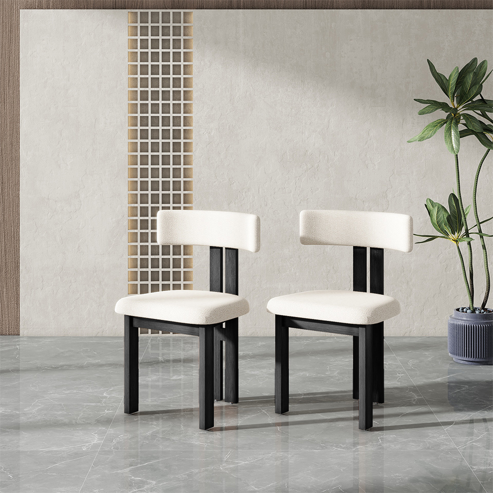 Modern Minimalist Black Armless Dining Chairs(Set of 2), Lamb Fleece, Ash Wood Veneer