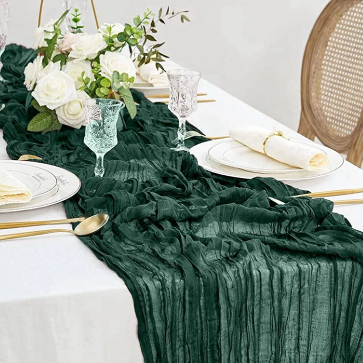 Green Gauze Table Runner Burlap Cheesecloth Table Setting Dining Rustic Country Wedding Birthday Decor Boho Table Linens