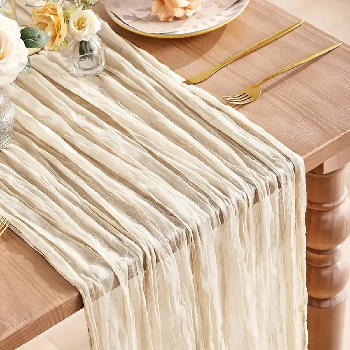 Gauze Semi-Sheer Table Runner Burlap Cheesecloth Table Setting Dining Rustic Country Wedding Birthday Decor Boho Table Linens
