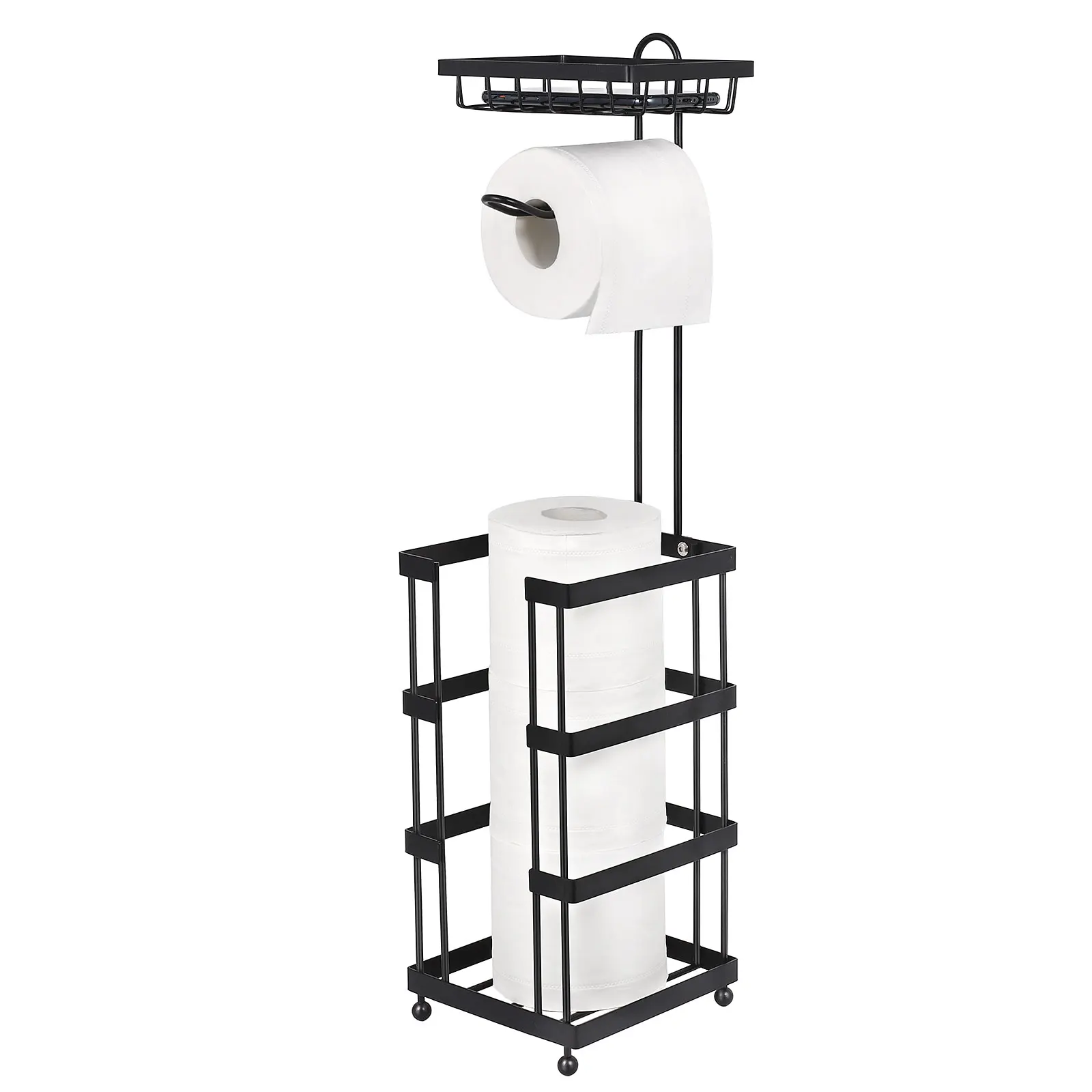 Freestanding Toilet Paper Holder Tissue Rack Stand Dispenser with Storage Shelf