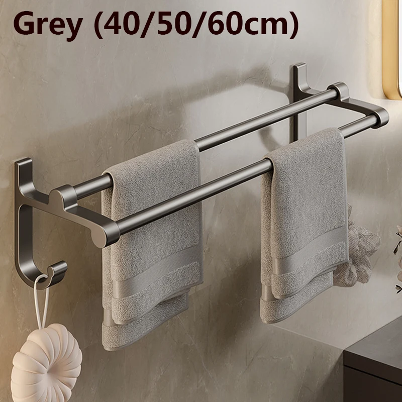 40/50/60CM No-Nail Bathroom Towel Bar Bathroom Accessories Towel Holder Aluminium Double Bar 2 Tier Shower Hand Towel Holder