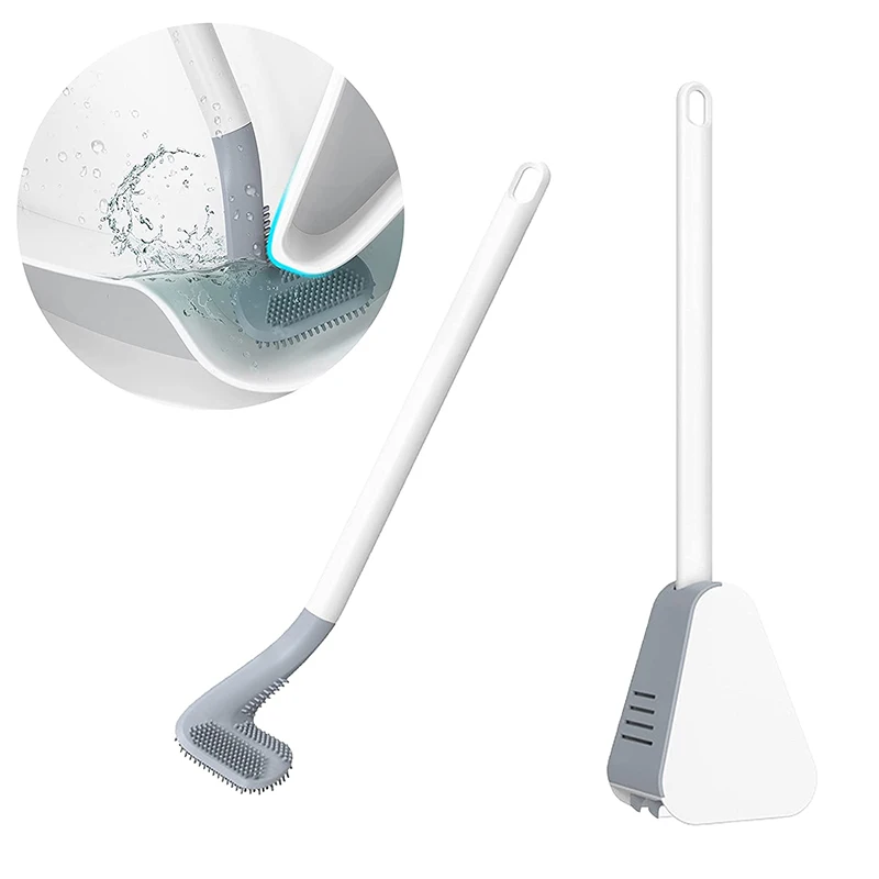 Flexible Toilet Brush Cleaner Long Handle Hanging Silicone 360 Degree No-Dead-Corner Flexible Cleaner Brush Holder Set Bathroom