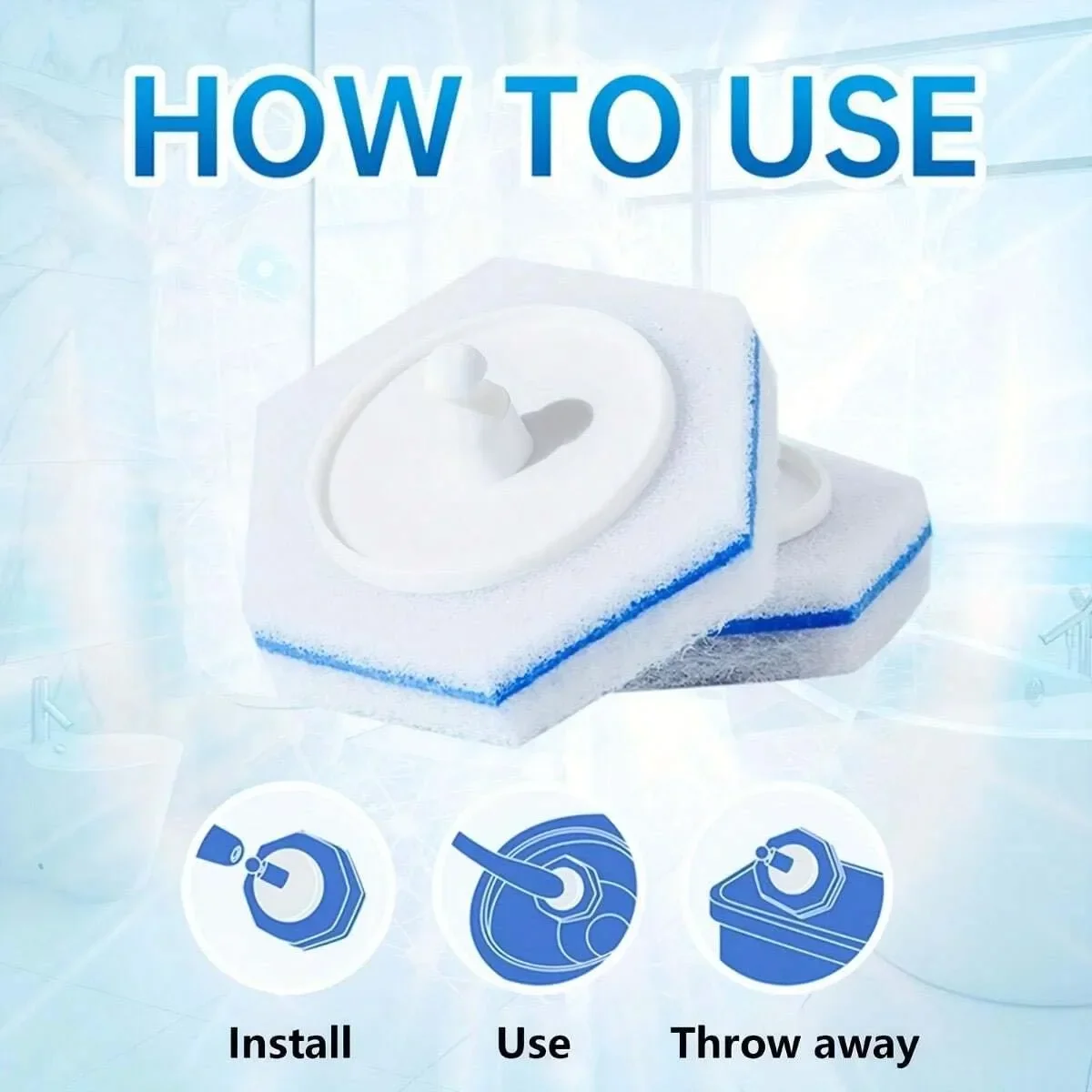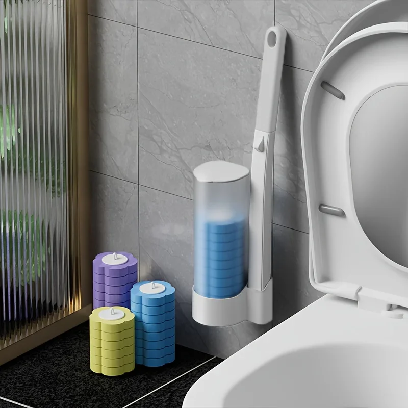 Toilet brush set with replaceable disposable heads, bathroom cleaning tool kit featuring wall-mounted toilet brushes