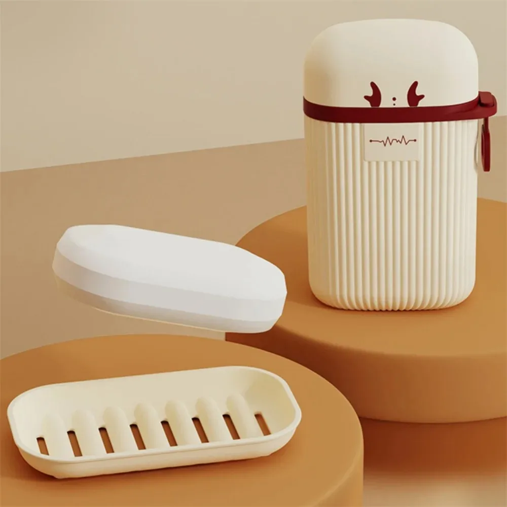 Portable Beige Soap Box Home Bathroom Soap Dish Travel Container Dish Tray Drain Soap Holder Plastic Soap Box with Cover