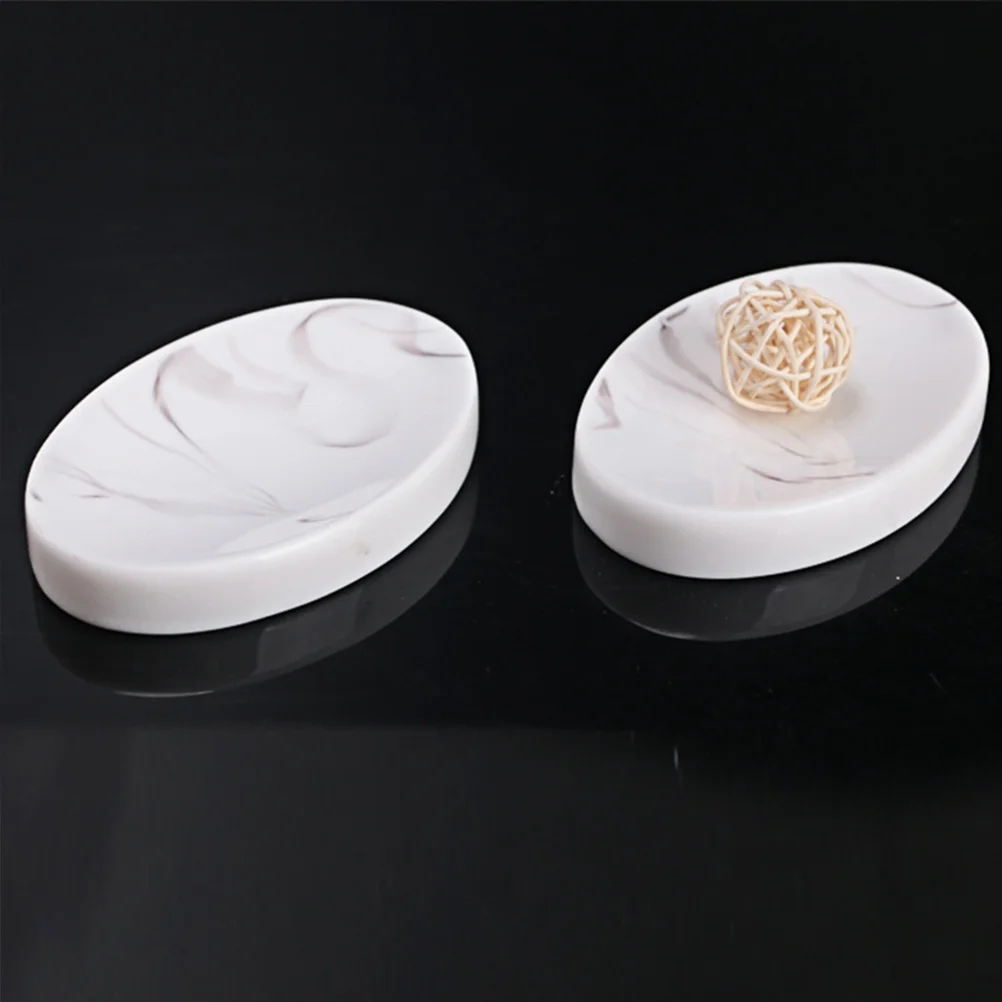 Round White Marble Pattern Soap Dish Resin Bar Holder Bathroom Decorative Tray Smooth Portable Soap Dishes Household