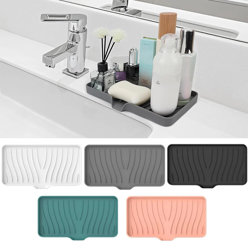 Silicone Bathroom Soap Dishes Sink Sponge Holder for Kitchen, Shower Soap Sponge Tray Counter Rubber Soap Dish with Drain
