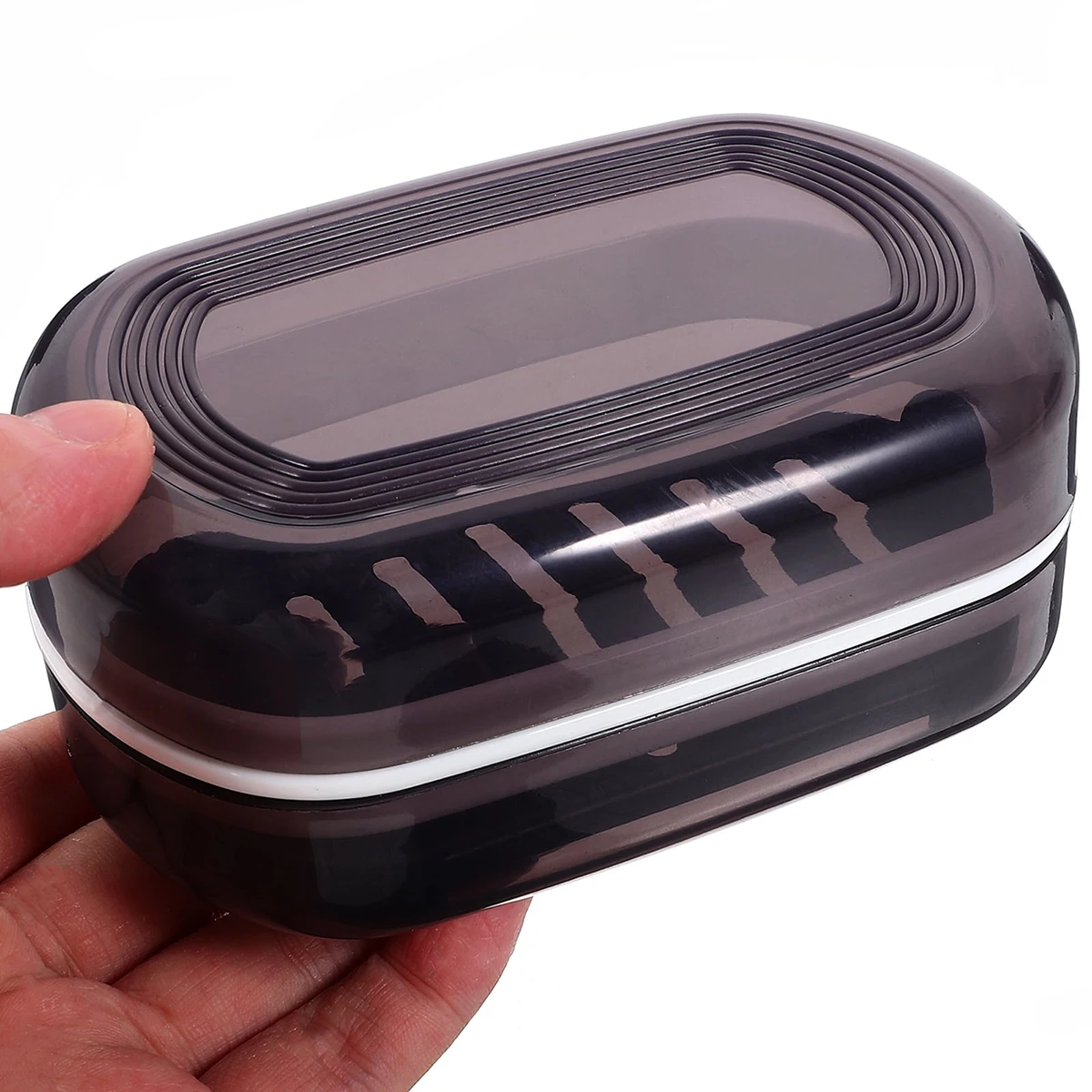 Portable Bathroom Soap Holder Container Box for Shower Black Covered Travel Soap Dish Double Layered Bamboo Storage