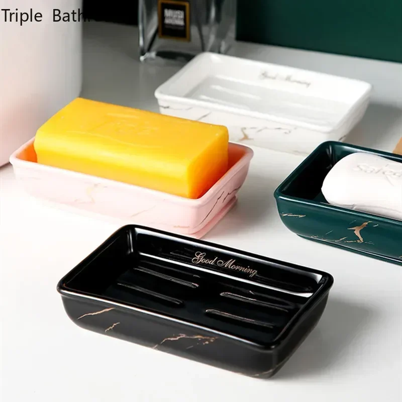 Light Luxury Soap Holder Ceramic Rectangle Household Bathroom Accessories Soap Dish Holders Restroom Organizer Kitchen Storage