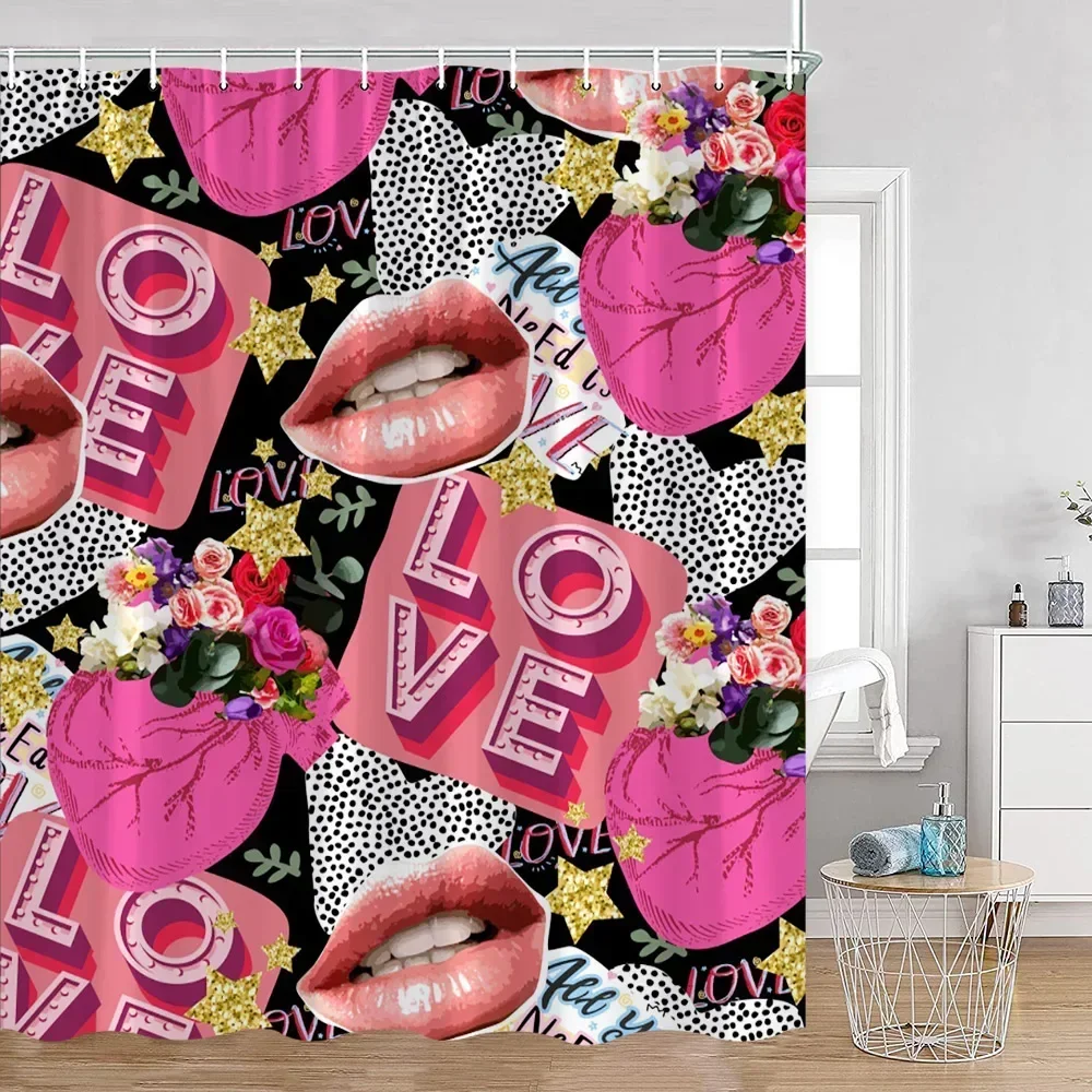 Pink Perfume Shower Curtain Cosmetic Lip Flower Panther Pattern Bathroom Decorations Shower Curtain