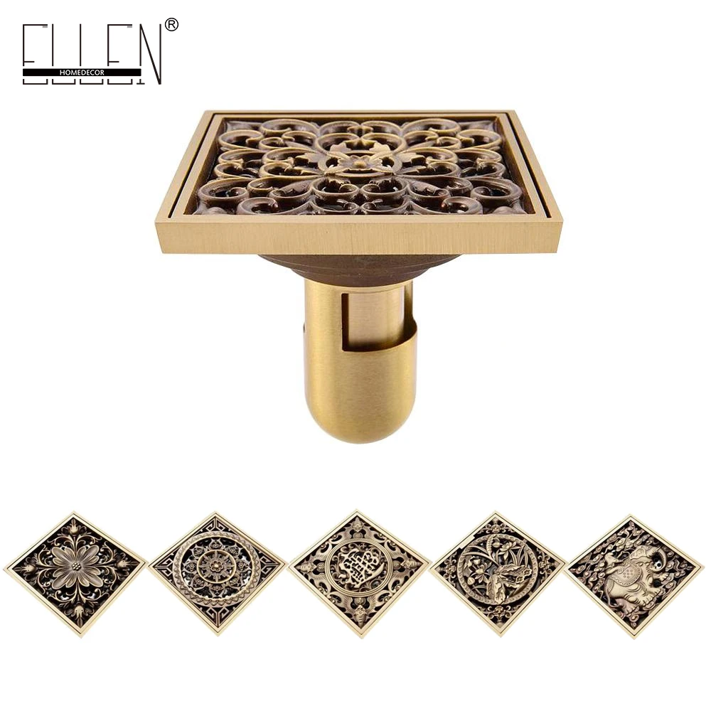 Vidric 10*10cm Euro Style Antique Brass Bathroom Shower floor Drain Wire Strainer Art Carved Cover Waste Drainer ELD212