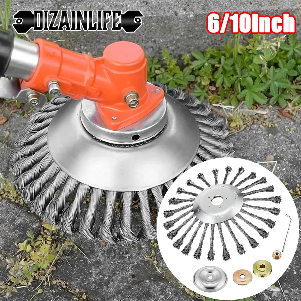 6/10 inch Garden Lawn Mower Trimmer Head Moss Weed Removal Steel Wire Wheel Brush Disc Universal Grass Weeds Blade Cutter Tool